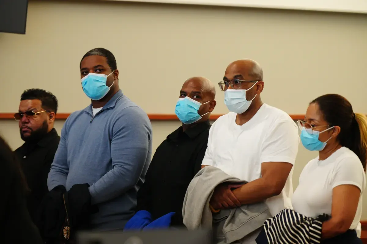 🖼️ ⚖️ Defendants standing in court as proceedings begin in the fraud case