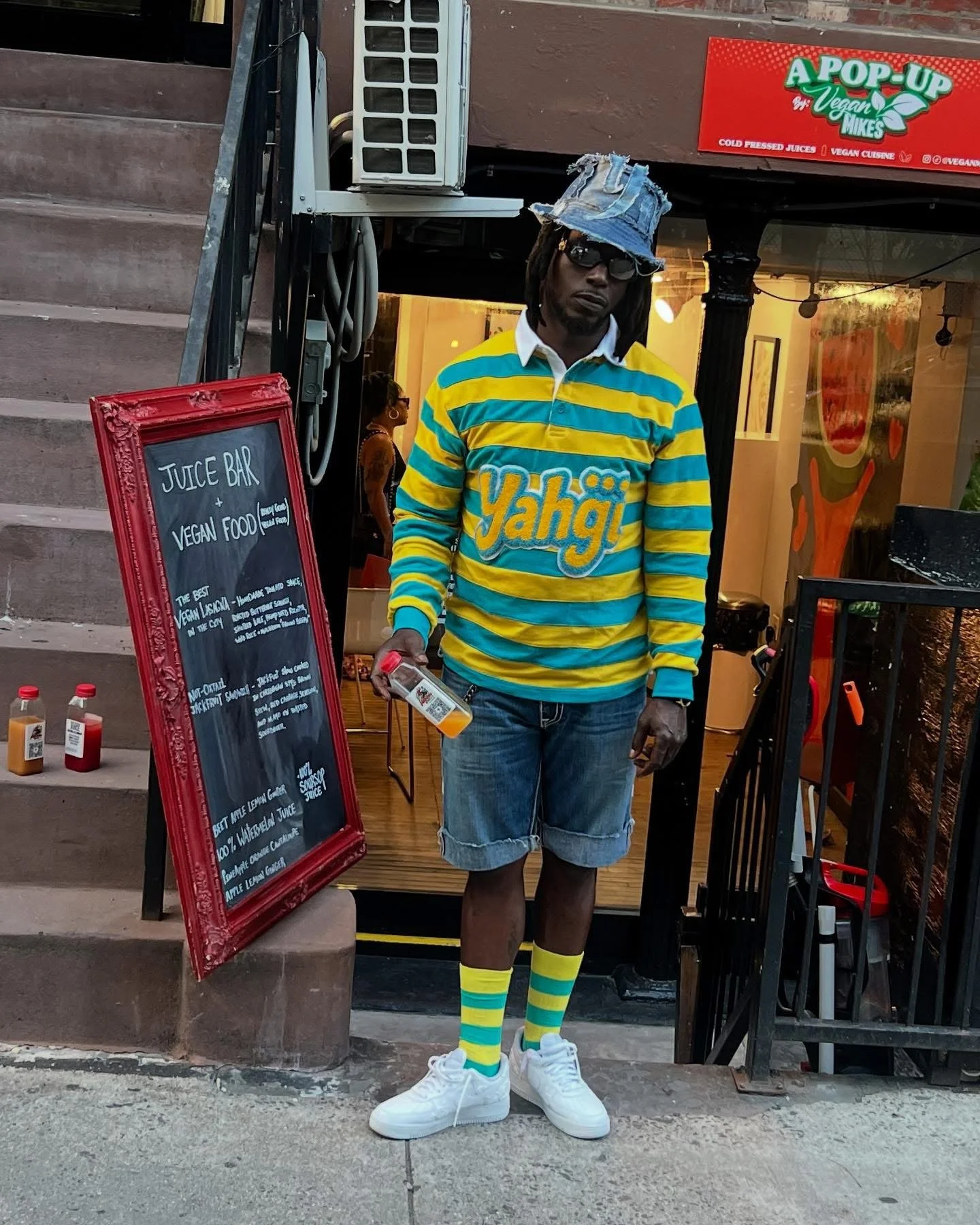 🧵 Blizery wearing his own Yahgi design — built, stitched, and styled by the artist himself.