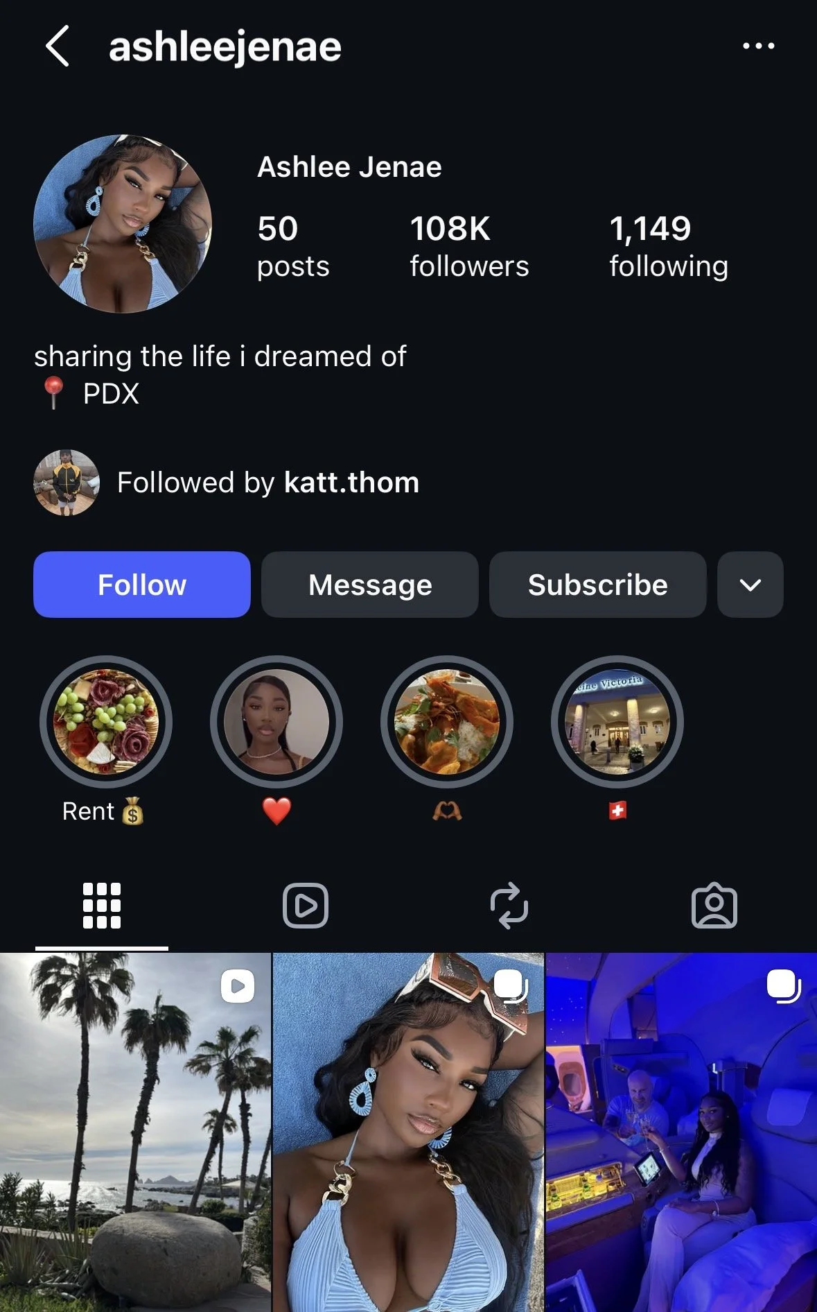 🕊️ Ashlee Jenae, known for her growing online presence and lifestyle content.
