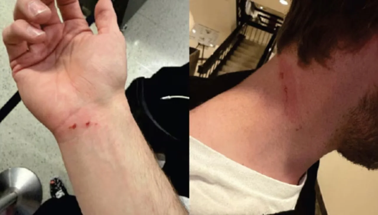 ๐ฉธ Injuries to a victimโs wrist and neck documented by investigators, consistent with restraint and choking allegations