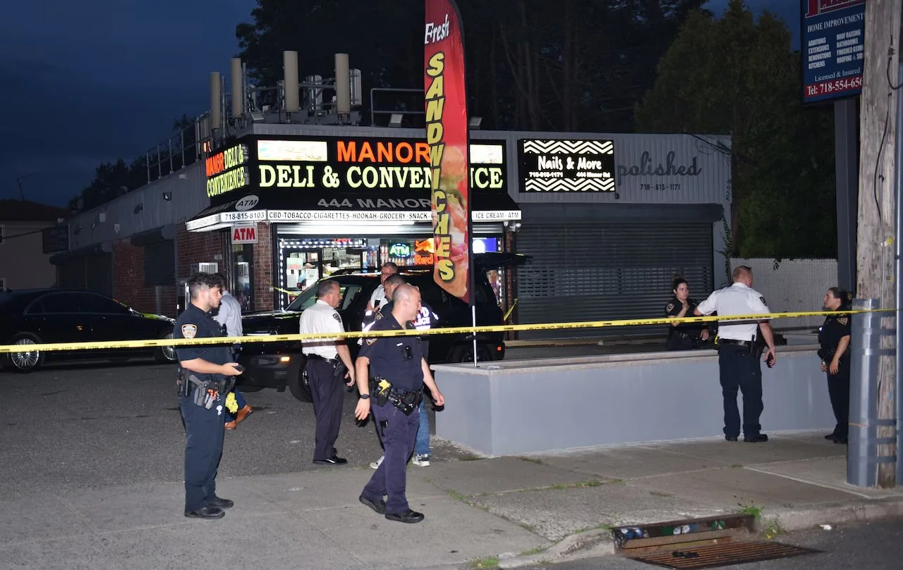 🚔 Police respond to Manor Deli on Manor Road after the fatal shooting.