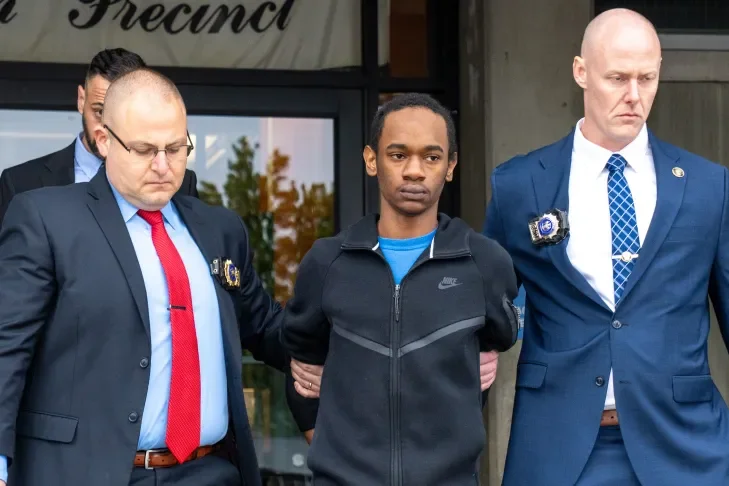 🕴🏾 Zahir Davis is escorted by detectives following his arrest in connection to the killing of Jaden Pierre.