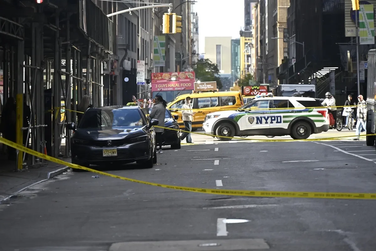 🚓 NYPD officers secure the area following the shooting in Midtown Manhattan.