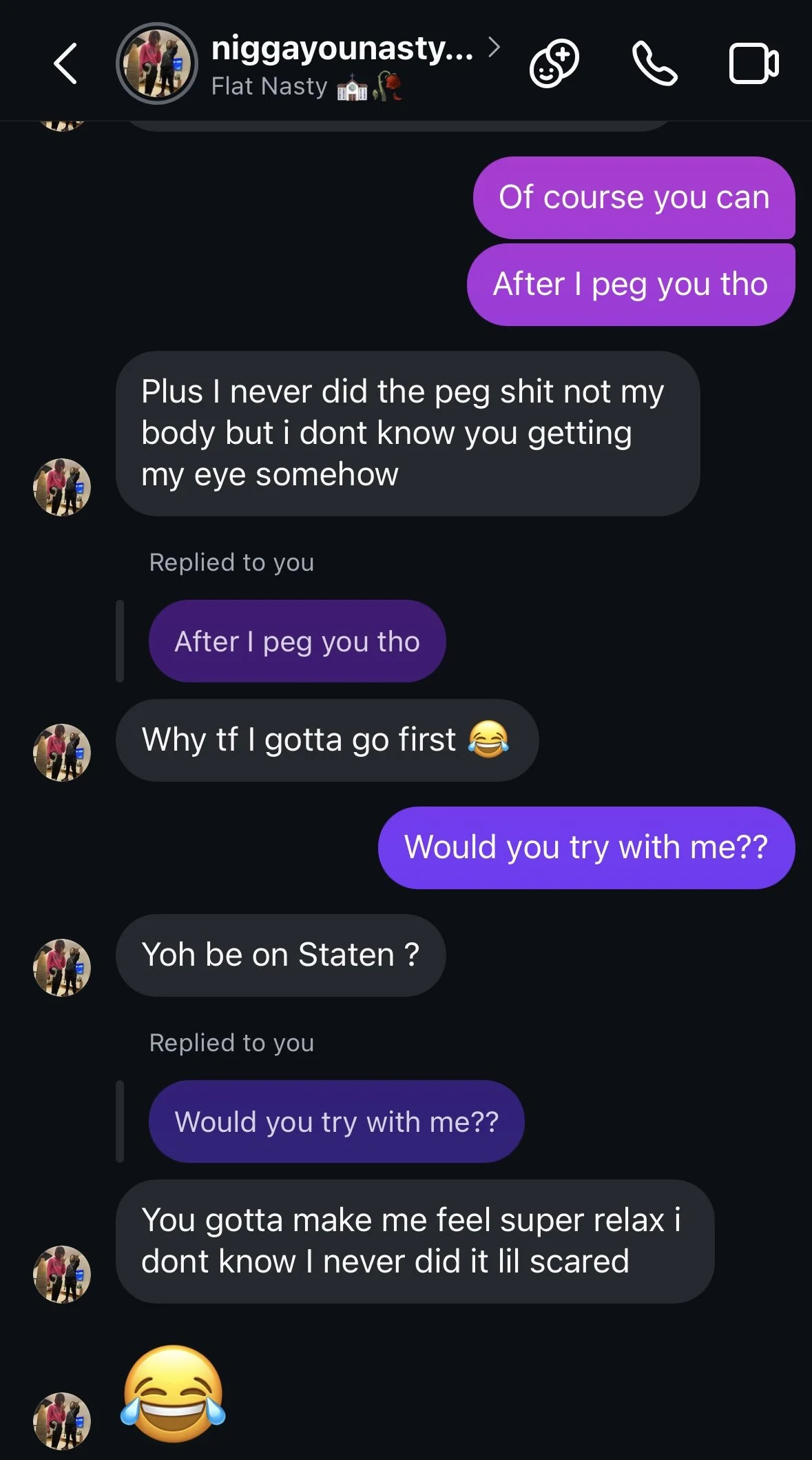 ➡️ 🙈 Exhibit B: Flat Nasty caught in the DMs, agreeing to “peg play” just to get close to Sasha.