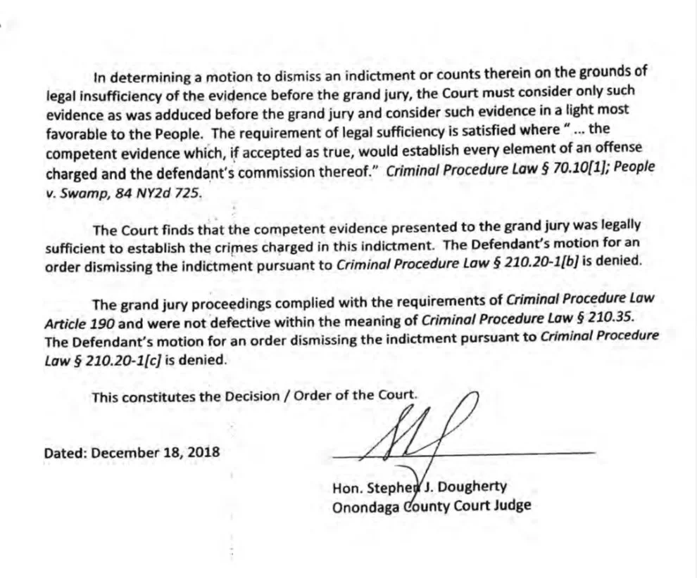 ๐จ Judge Doughertyโs December 18, 2018 ruling upholding the indictment despite zero victim testimony or physical evidence.